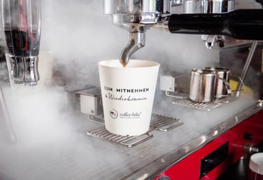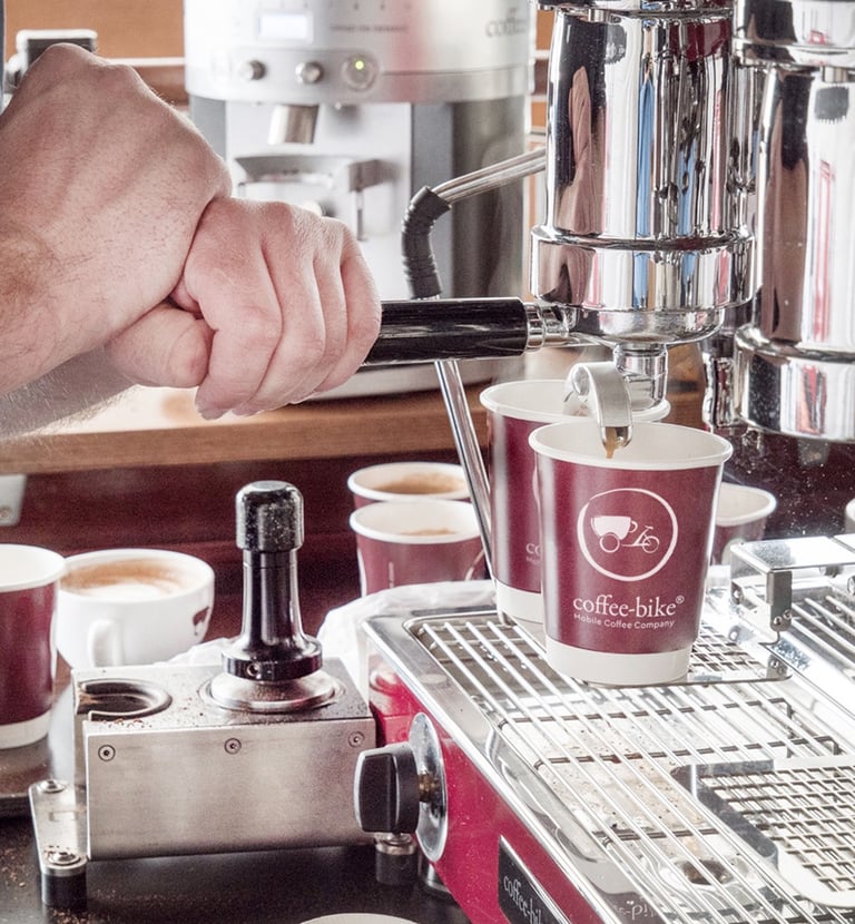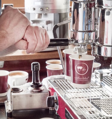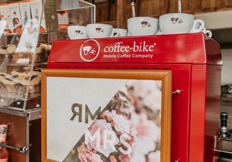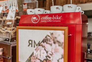 Machen Sie Ihre Hochzeit unvergesslich mit unserem Barista-geführten Kaffee-Bike und veganen Optionen.